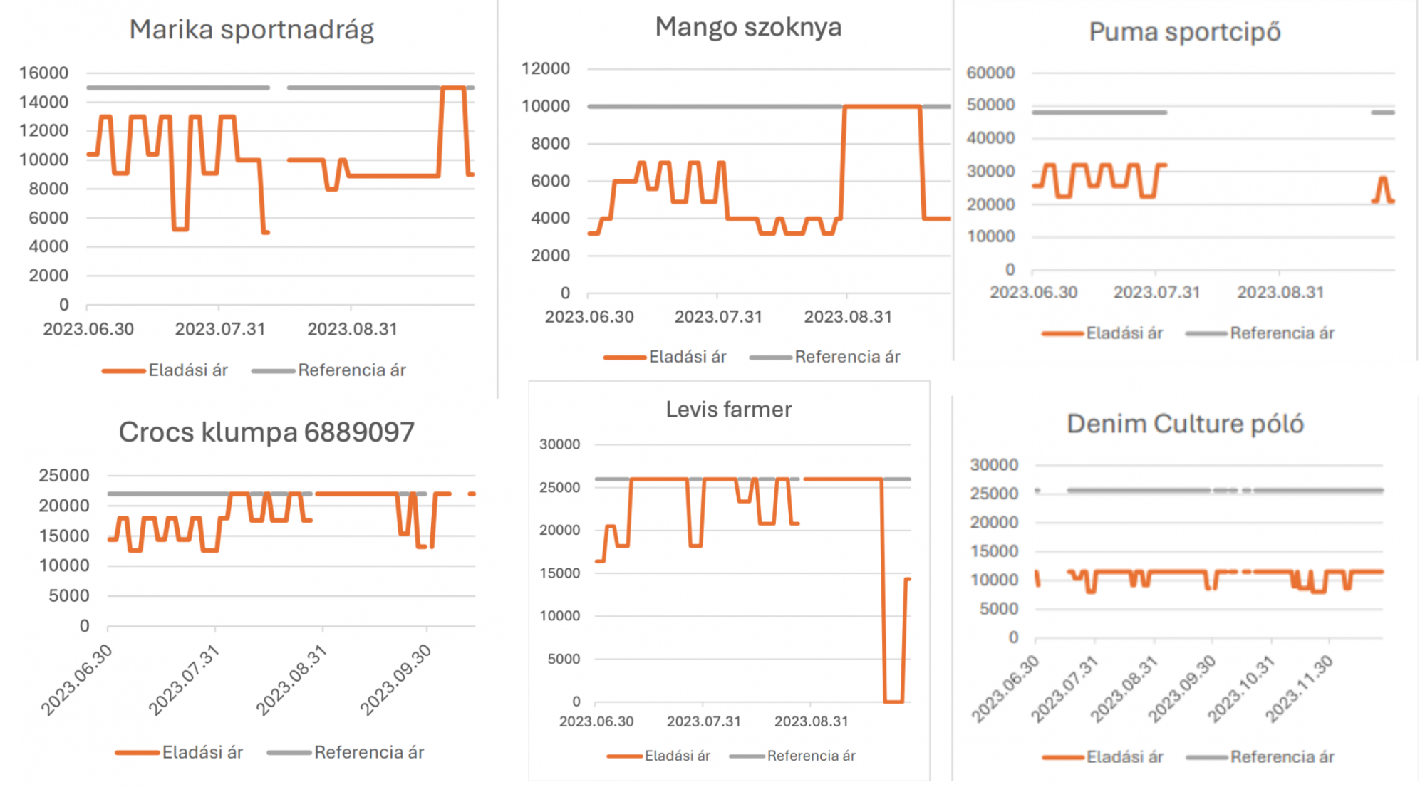 A GVH 2023 júliusától saját módszerével is megvizsgálta, hogyan változott a kiválasztott termékek ára az Abou You webshopjában. Ebből is az jött ki, hogy az About You gyakran változtatja az eladási árakat és kevés ideig használja a termék eredeti, teljes árát. Egy Crocs klumpának 2023. június 30. és 2023.december 27. között például 13 különböző eladási ára volt, és 21 alkalommal változtattak az árán. Négy termék esetében soha nem érvényesült az eredeti ár tényleges eladási árként a vizsgált időszakban (például egy Puma sportcipőnél és egy Denim Culture pólónál), két terméknél pedig csak néhány napig (például a Marika sportnadrágnál).