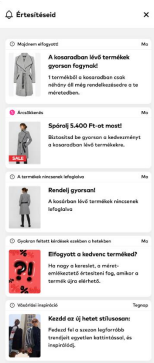 - a készletinformáció a termék megtekintését követően a vásárlási folyamat több fázisában is megjelenik, esetenként akár push üzenet formájában.