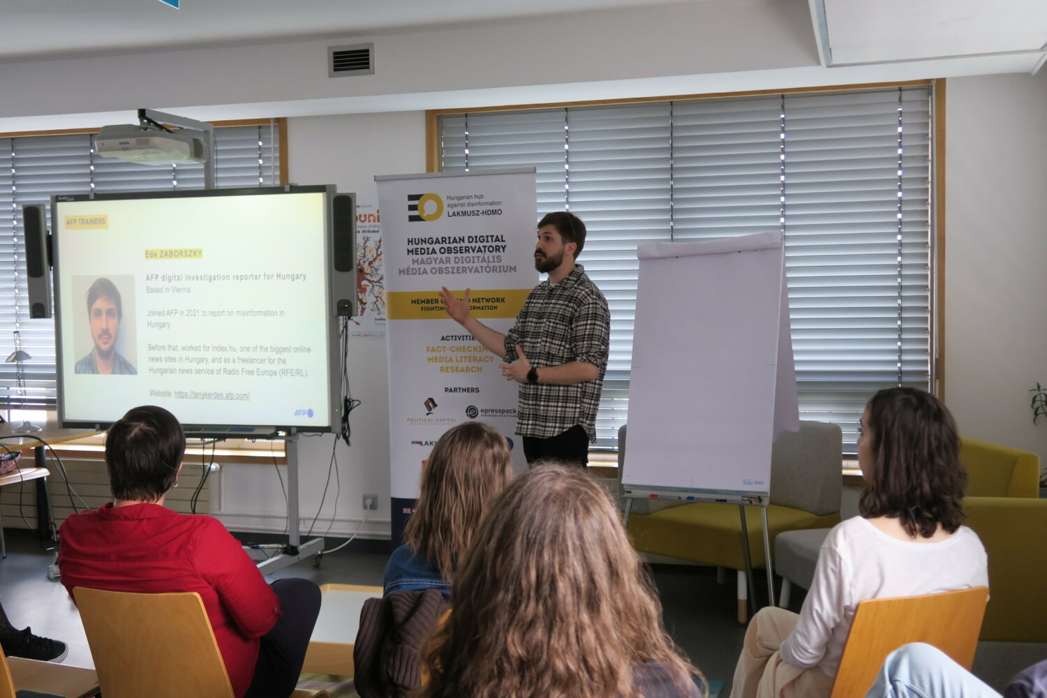On April 15, 2024 international news agency AFP launched its second training course in digital investigation as part of the Lakmusz-HDMO project. The training was designed for a small group of Hungarian journalists, extended to students in journalism.