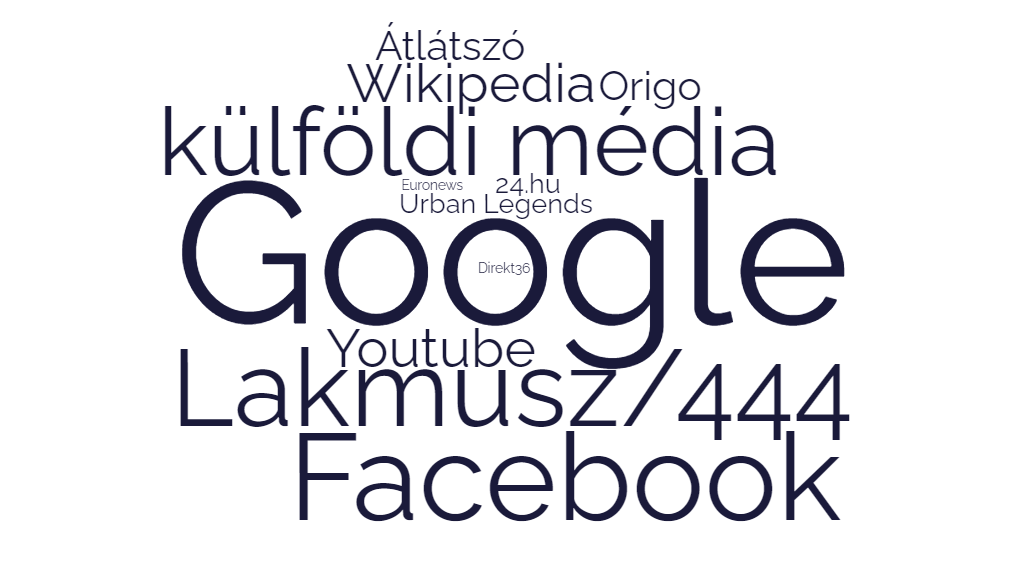 4. A Google-keresés a leggyakoribb módszer, míg a Lakmusz a legtöbbet használt tényellenőrző oldal. A tényellenőrző eszközöket, módszereket alkalmazók közül a legtöbben a Google keresőjét hívják segítségül, ha egy általuk gyanúsnak talált információ hitelességét kívánják ellenőrizni. Többen a vélhetően megbízhatóbbnak tartott külföldi médiumokon néznek utána, mások a Facebookot használják ugyanerre. Hasonló a Lakmusz/444.hu páros említettsége is, ami így a tényellenőrző oldalak közül a leggyakrabban használt lett.