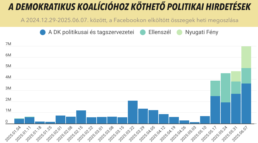 Legutóbbi elemzésünk óta, a május 18. – június 7. közötti három hétben 195 millió forintot költöttek magyarországi szereplők politikáról, választásokról és társadalmi kérdésekről szóló hirdetésekre a Meta felületein (a Facebookon és az Instagramon). Így ebben az évben összesen már az 1,2 milliárd forintot közelíti a hirdetések összege.